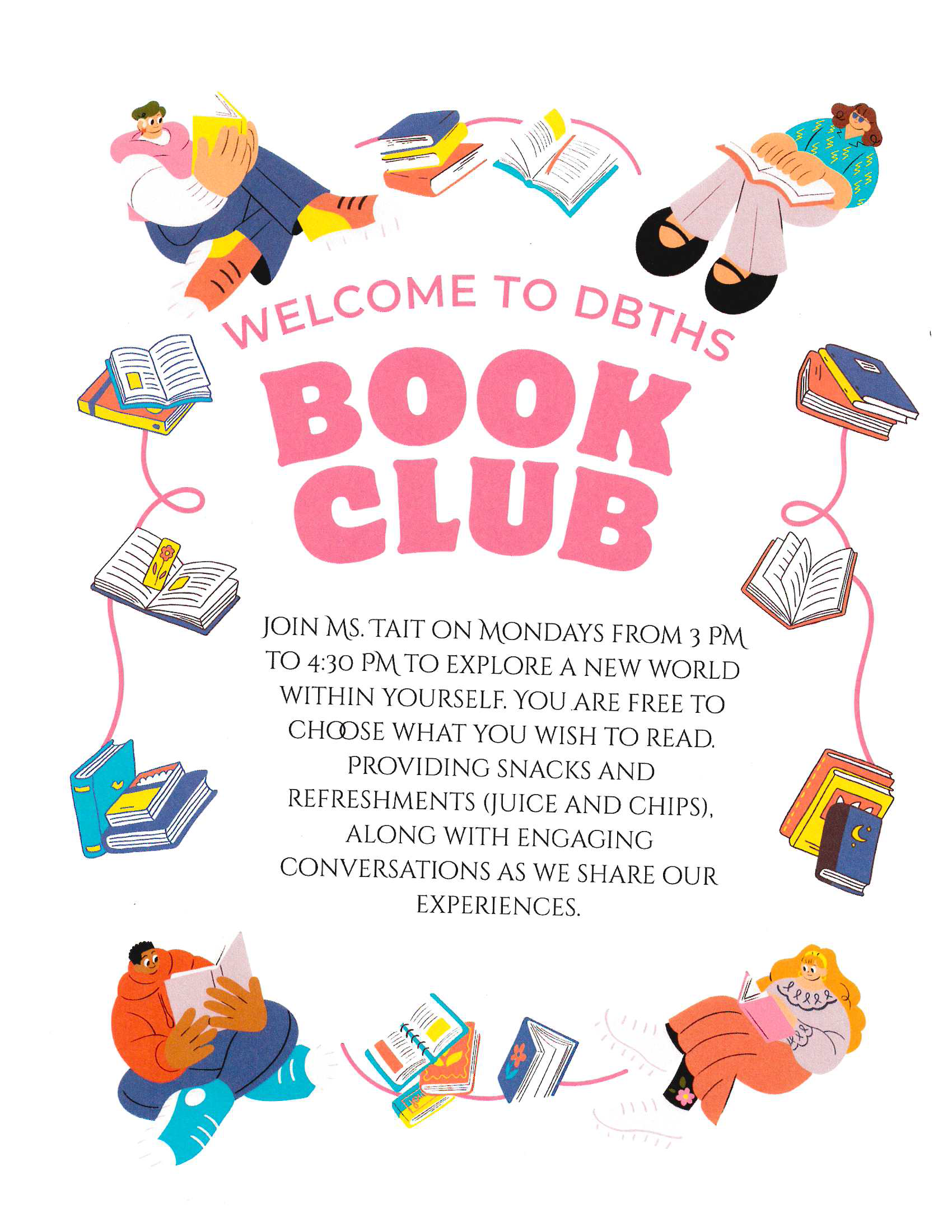 Join Ms. Tate on Mondays from 3:00 PM to 4:30 PM to explore a new world within yourself. You are free to choose what you wish to read.